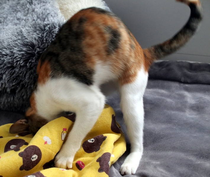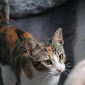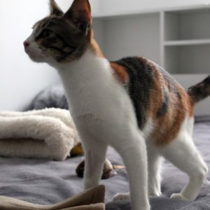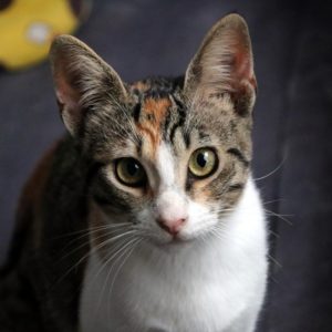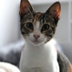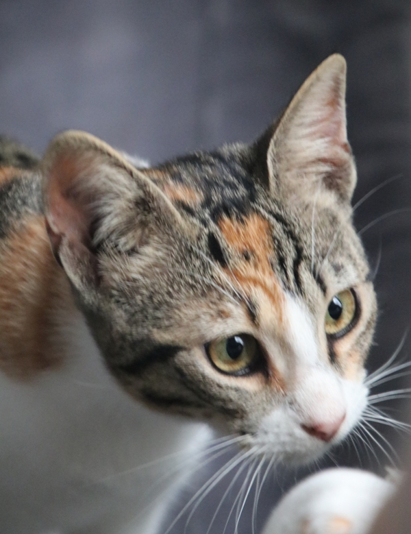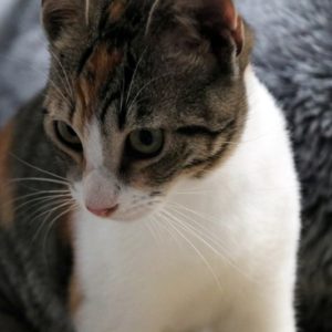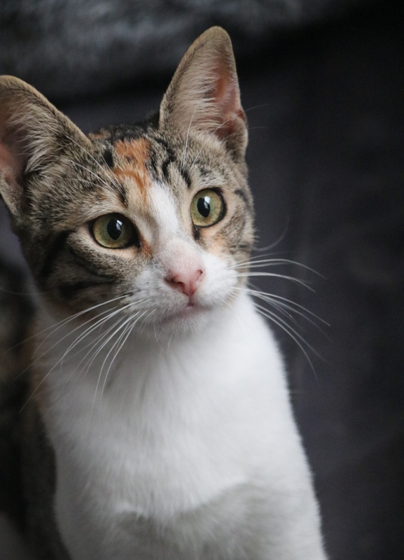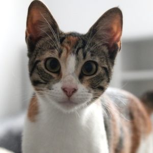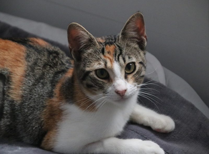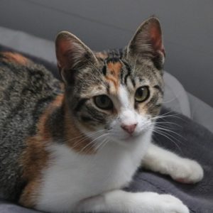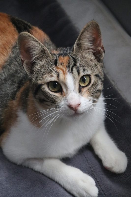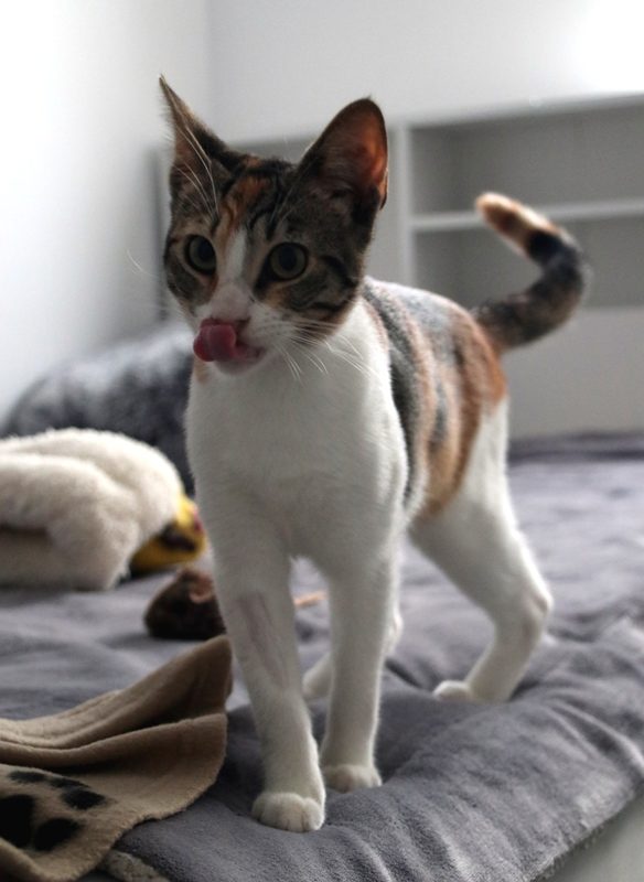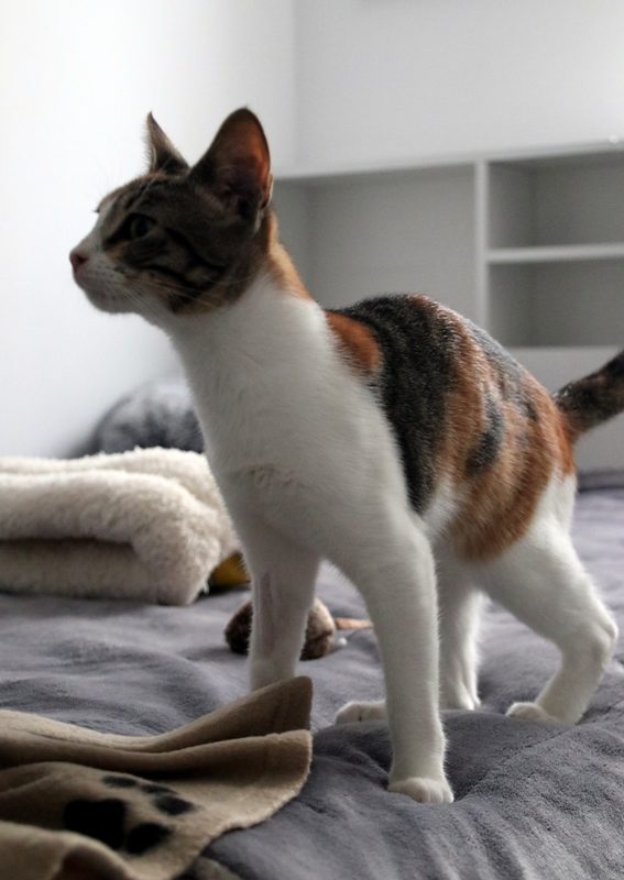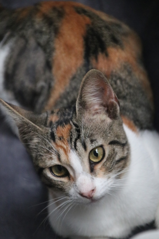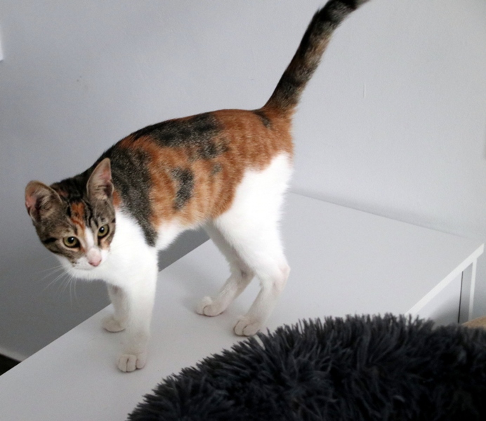 Os presentamos a AMANDA, un solete de gatita tricolor jaspeada, tan  lista súper lista que, ella solita se ha metido en una clínica veterinaria pidiendo cobijo y comida. Vaya tela las gatas tricolores, con ese plus de inteligencia que  las hace tan especiales….