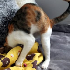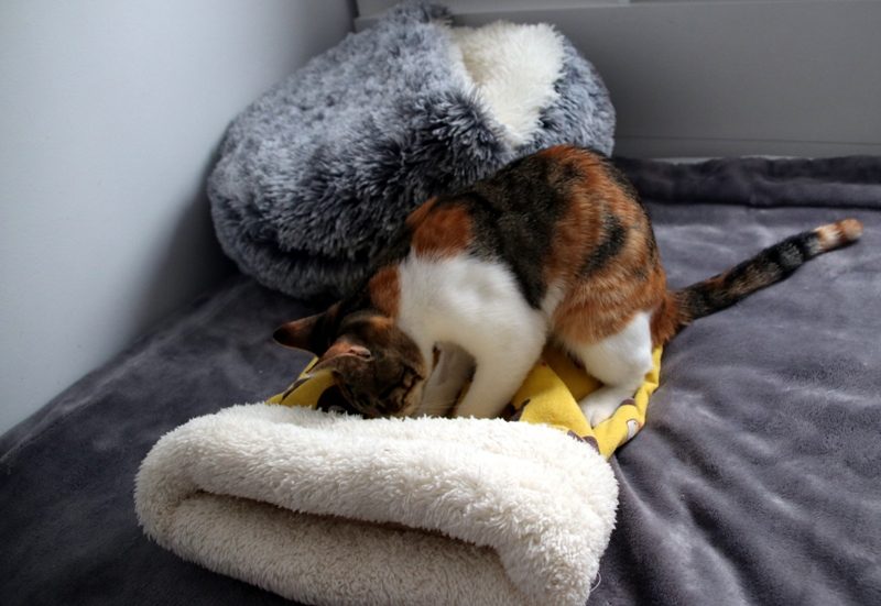 Cuesta que las personas entiendan que, si en la Ley de Bienestar Animal indica claramente que es OBLIGATORIO esterilizar a todos los gatos, pues va a ser que es por algo, y no por un capricho. Y ese algo es por lo que precisamente ha acabado en la calle Amanda. Se puso en celo, y, o bien las personas con quienes convivía se cansaron de escuchar maullidos constantes y la soltaron en la calle, o fue ella quien salió por cualquier lugar de la vivienda a la calle, buscando gatos, y no supo volver.