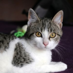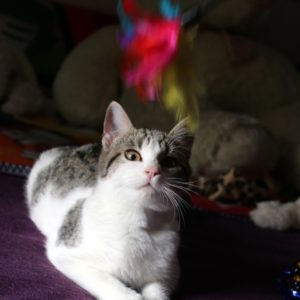 Se entregará junto a la gatita con la que esté en acogida y tenga buena relación, o en un hogar en el que ya haya otra gata buena y juguetona con la que poder compartir el resto de su vida.