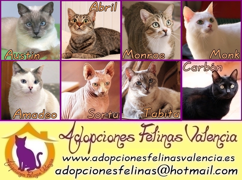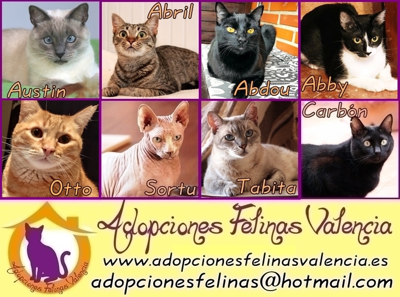 Estos son los carteles de los gatos y gatas que tenemos en acogida, y que están disponibles para adoptar. Si algun@ está recientemente reservad@, puede que aparezca en los carteles, pero no se encuentre su álbum, al no estar disponible para adopción. Por tanto, los gatos o gatas que estén en los carteles, pero de manera ocasional no tengan álbum, es porque ya no se les puede adoptar, al estar reservados o no disponibles por cualquier otra razón.