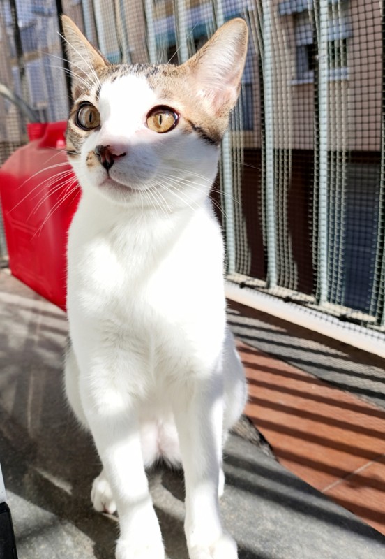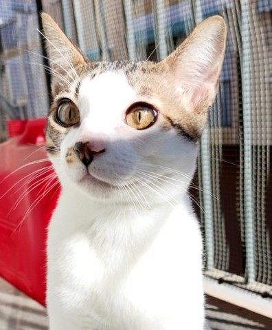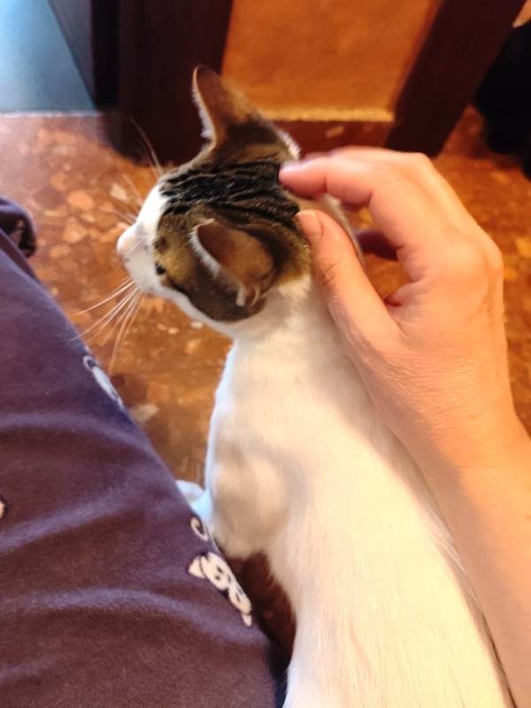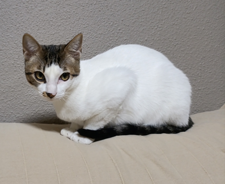 Es un gato muy guapo, bastante ñoño para pedir mimos, aunque tiene un punto asustadizo de los movimientos rápidos y los ruidos imprevistos. Por tanto, es más que apto para un hogar de personas adultas, pero no sería un gato adecuado para un hogar con niños.