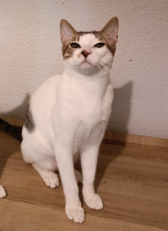 Nacido sobre el 10 de julio de 2025, ya está desparasitado, vacunado, es negativo en la analítica de sangre, a leucemia e inmunodeficiencia felinas, y lo hemos esterilizado. Está muy sanito, y ya está totalmente preparado para su adopción definitiva.