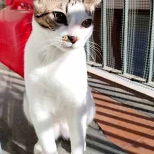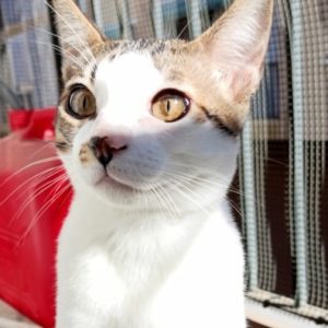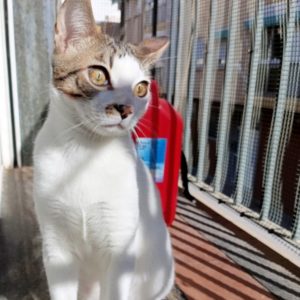 Convive en su casa de acogida con nuestro panterita rescatado KUTI, con el que se lleva súper bien, y una adopción conjunta sería genial, porque son muy complementarios, aunque pueden ser adoptados por separado también, siempre que sea en un hogar en el que ya haya otro gato macho que sea muy juguetón, y le vaya bien un compañero para quemar energía.