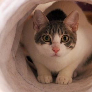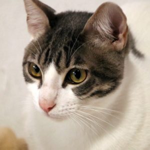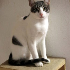 Nacido sobre el 10 de julio de 2025, ya está desparasitado, vacunado, es negativo en la analítica de sangre, a leucemia e inmunodeficiencia felinas, y lo hemos esterilizado.  Está muy sanito, y ya está totalmente preparado para su adopción definitiva.