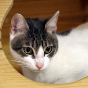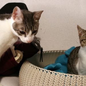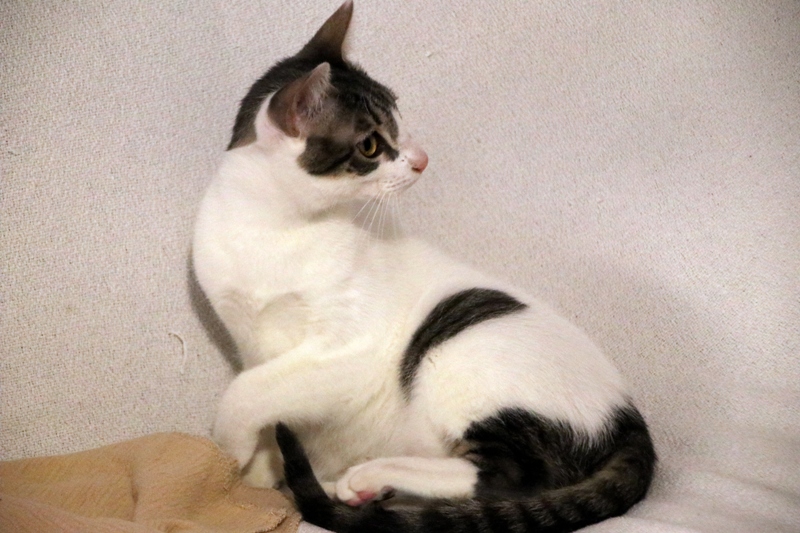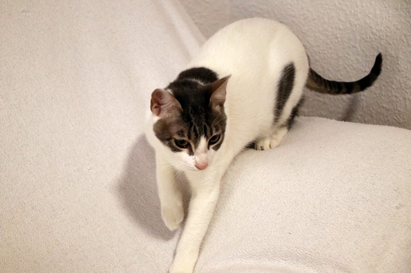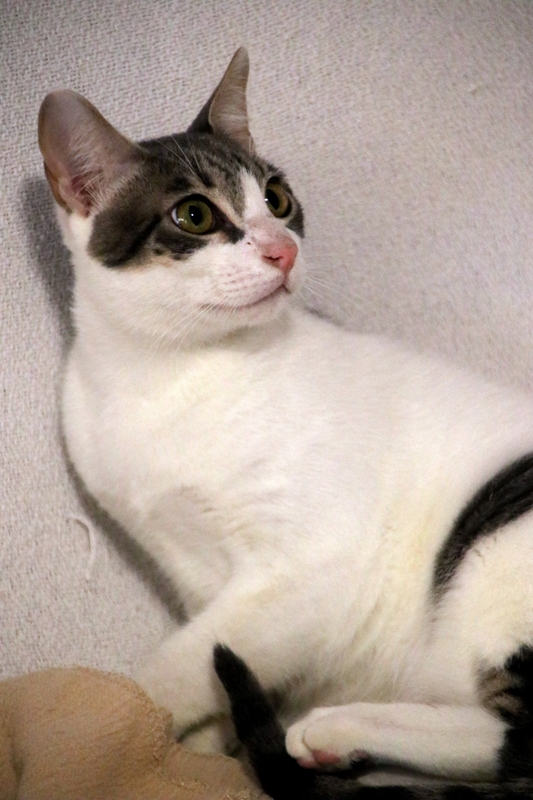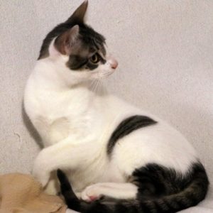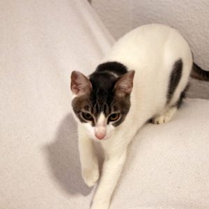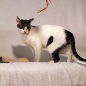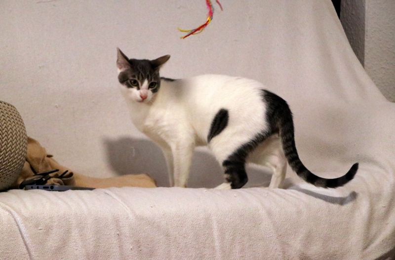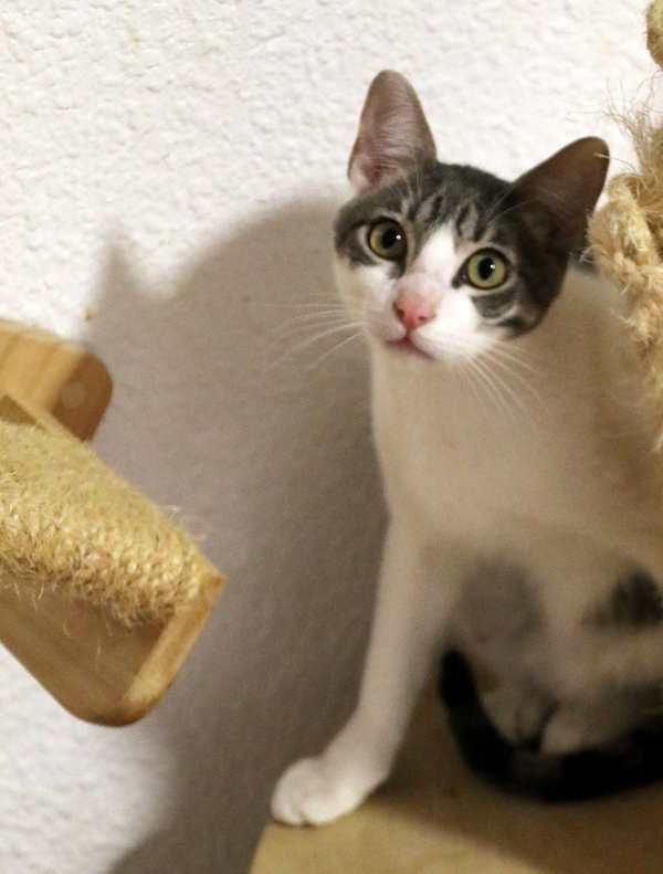 Convive en su casa de acogida con nuestro rescatado blanquipardo KURTIS, con el que se lleva súper bien, y una adopción conjunta sería genial, porque son muy complementarios, aunque pueden ser adoptados por separado también, siempre que sea en un hogar en el que ya haya otro gato muy bueno con quien compartir el resto de su vida.