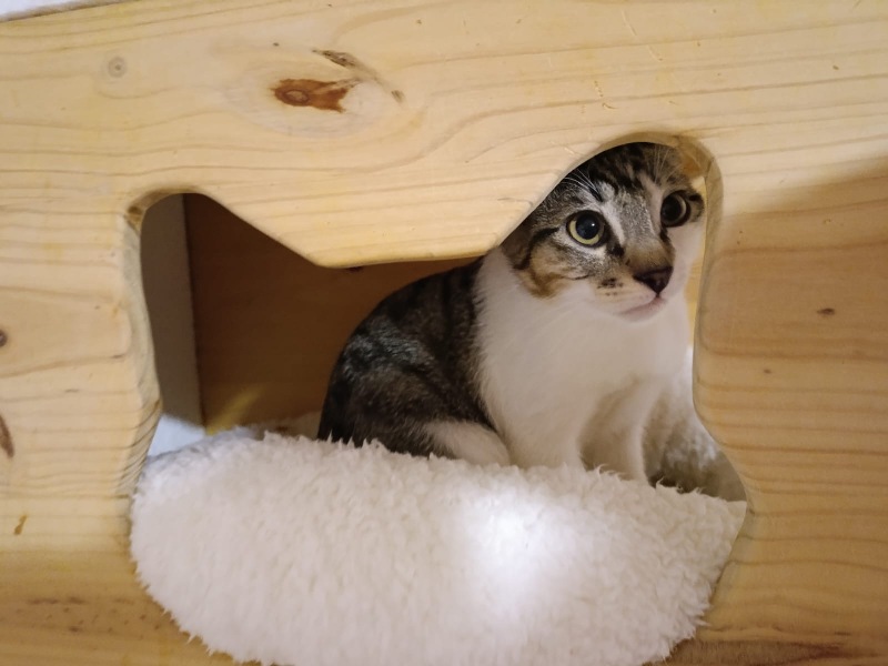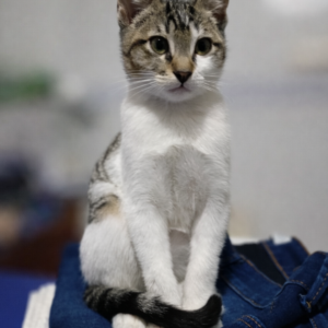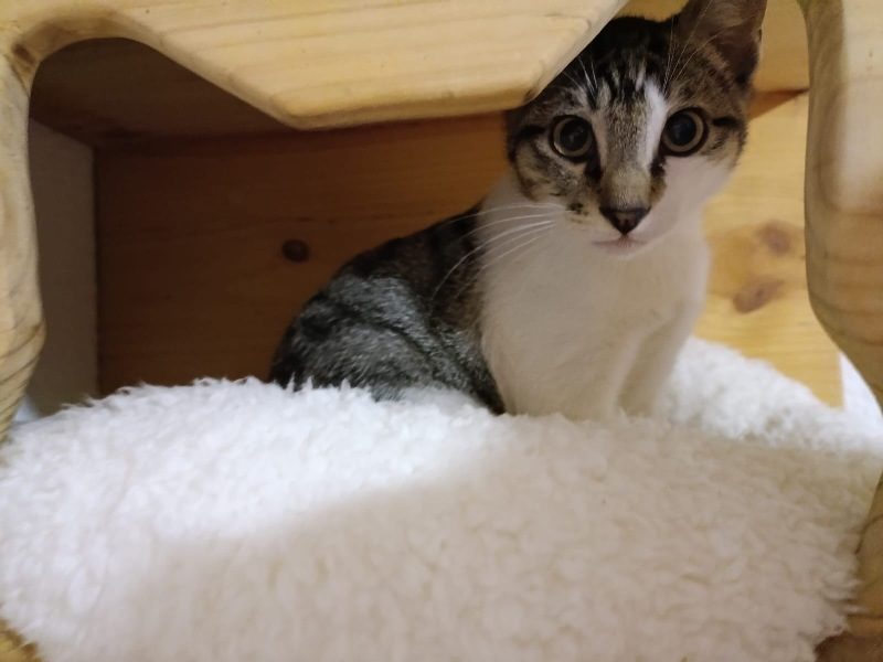 Nacido el 14 de octubre de 2025, ya está desparasitado, vacunado, y tras pasar su cuarentena ha dado negativo en la analítica de sangre, a leucemia e inmunodeficiencia felinas. Procederemos a su esterilización en breve, porque está muy sanito, y ya estará totalmente preparado para su adopción definitiva.