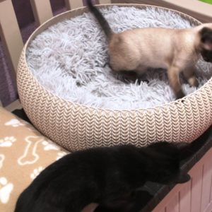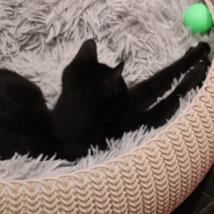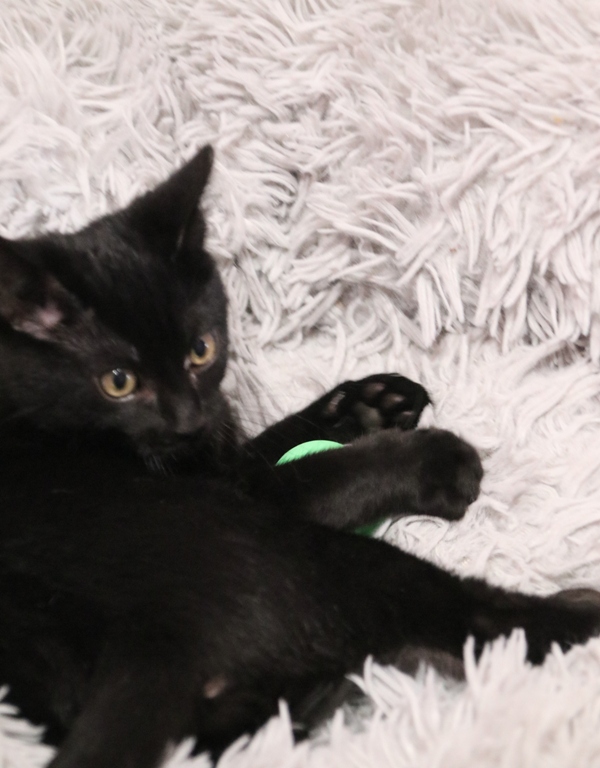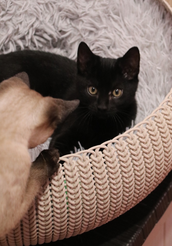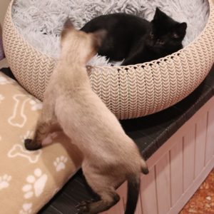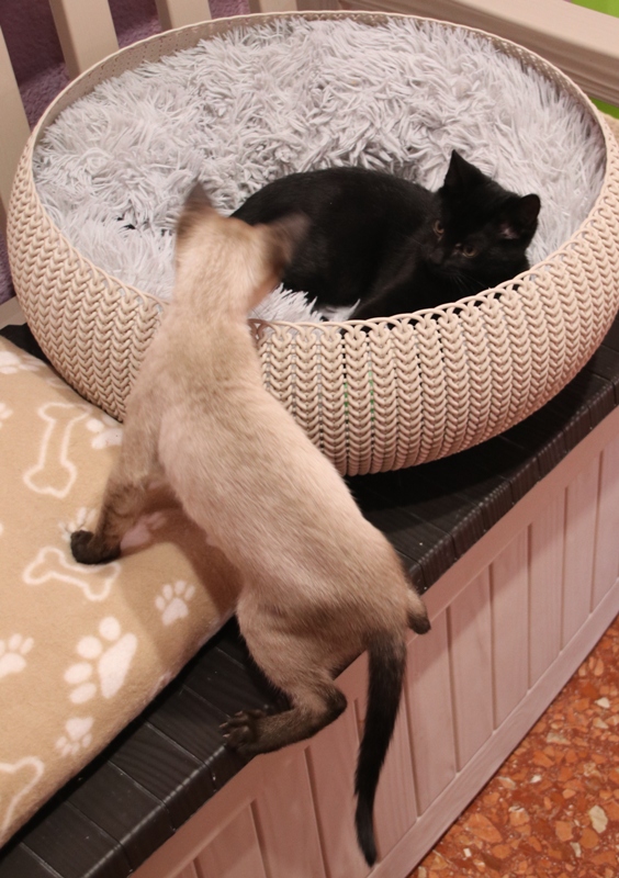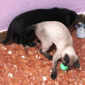 Se entregará junto al gatito con el que esté en acogida y tenga buena relación, o en un hogar en el que ya haya otro gato que necesite compañero para quemar energía de juego, con quien poder compartir el resto de su vida.