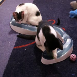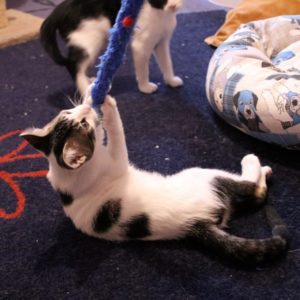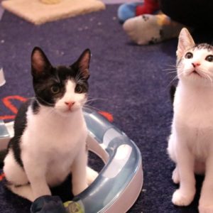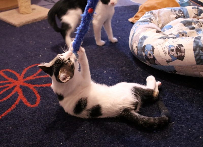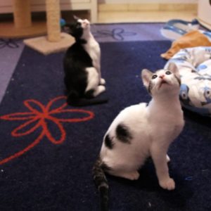 Una adopción conjunta les haría súper felices. Entregamos a los gatos cachorros siempre por parejas, nunca como gatos únicos antes de los 4 meses de edad. Pueden ser adoptados a partir de las 9 semanas, si se trata de adopción conjunta, o si van a un hogar en el que ya haya otro gato joven y juguetón con quien compartir el resto de su vida.