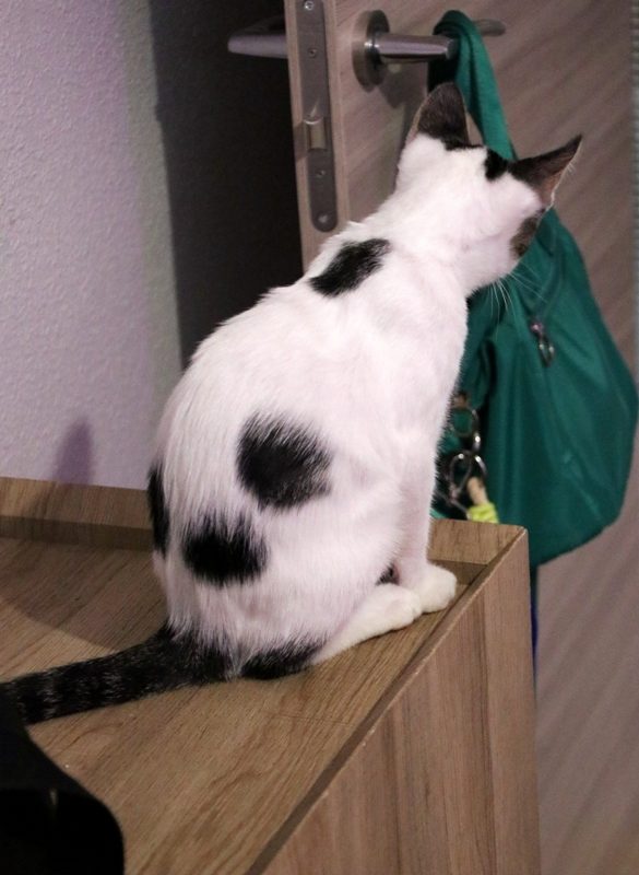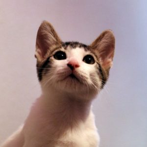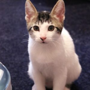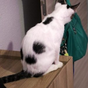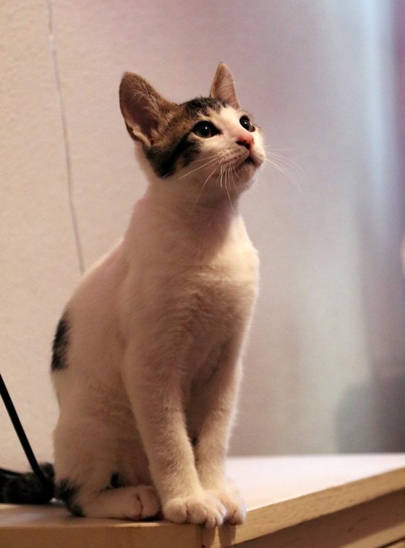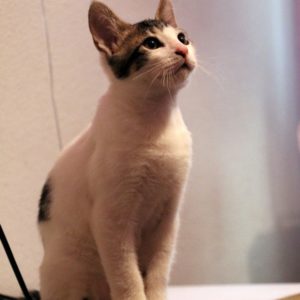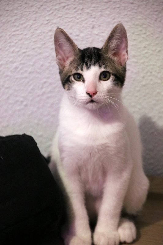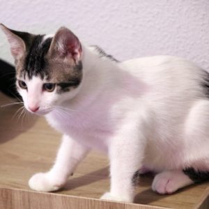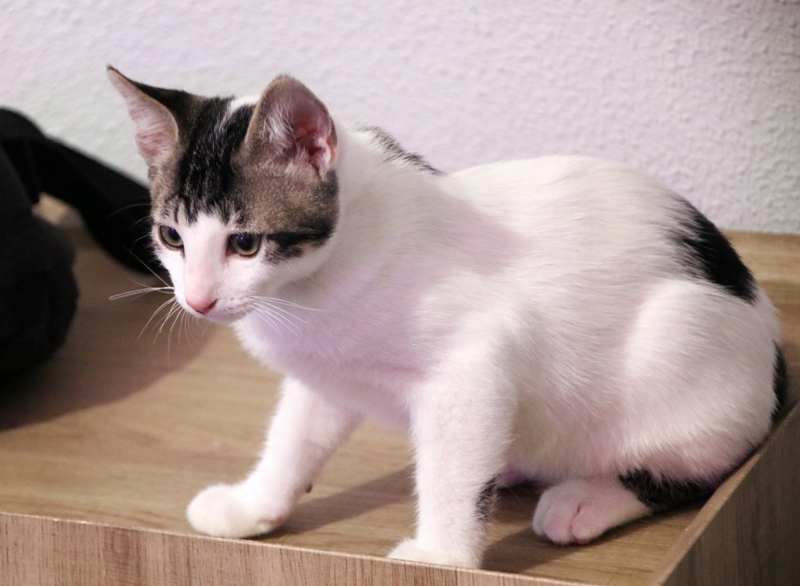 Este pequeñajo blanquipardo guapetón es súper ronroneador, divertido, trastete y buenazo. Convive en su casa de acogida con su hermano blanquinegro MATÍAS, y pasan el día correteando, haciendo el trasto, y cuando se cansan duermen uno sobre el otro pegaditos. Son un amor los dos.