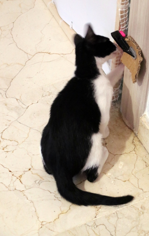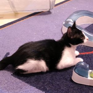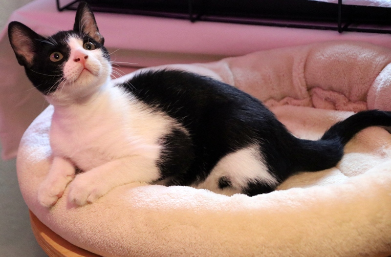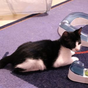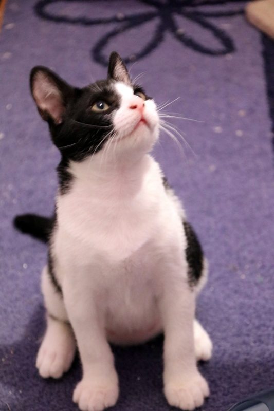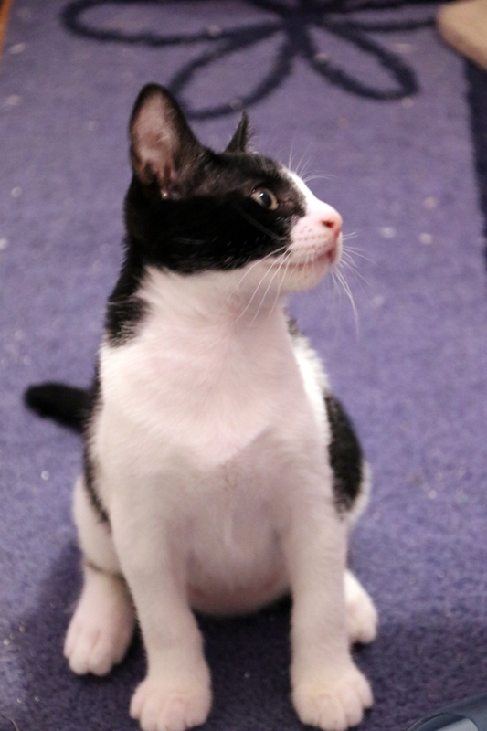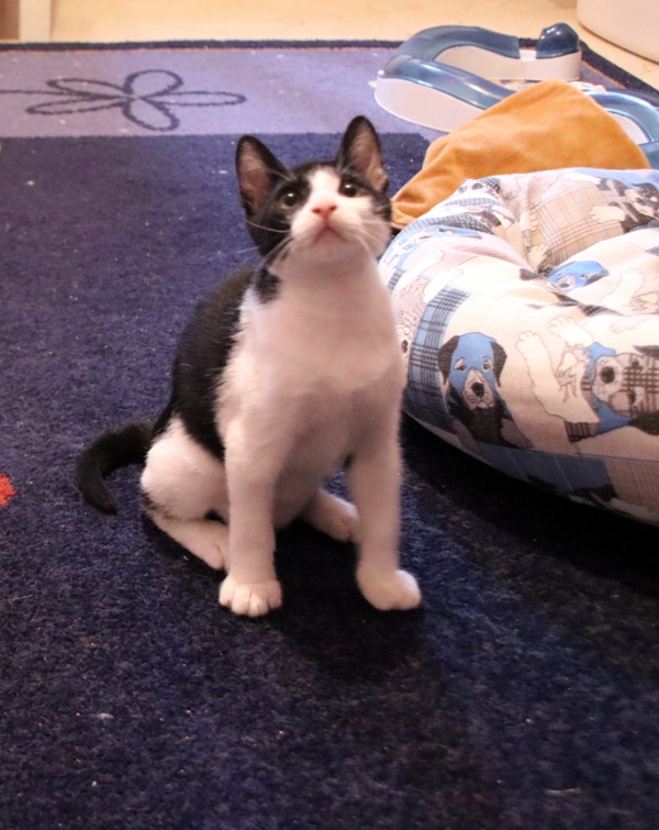 Este pequeñajo blanquinegro capuchino es al principio precavido, y luego le encanta que lo mimes, lo cojas al bracito y le rasques la barriguita, además de correr y jugar que se las pela, el enano…