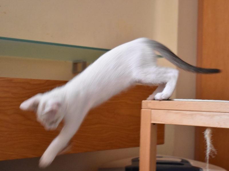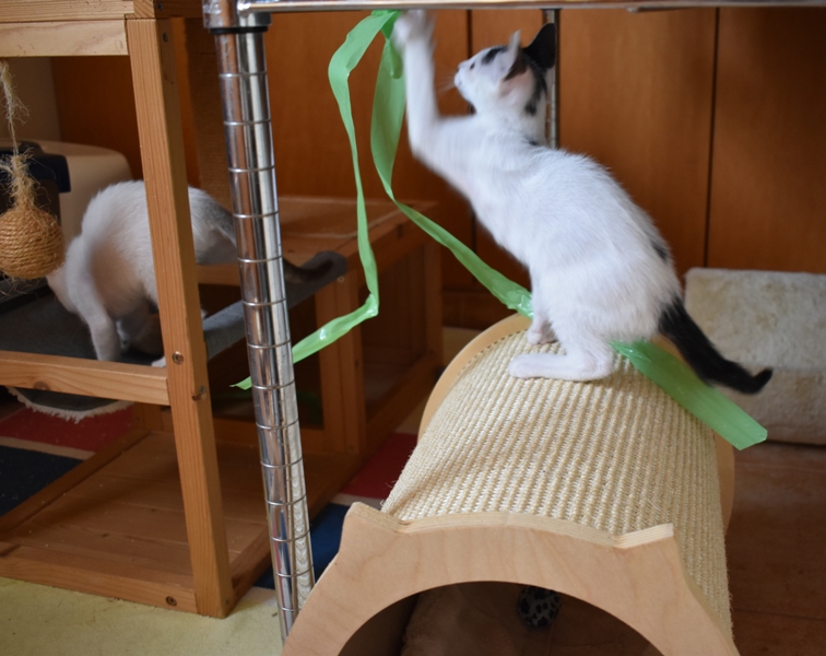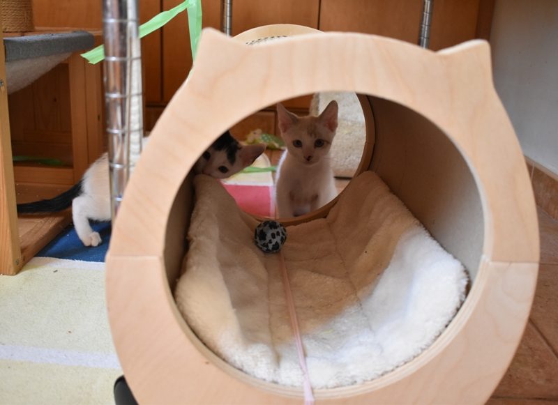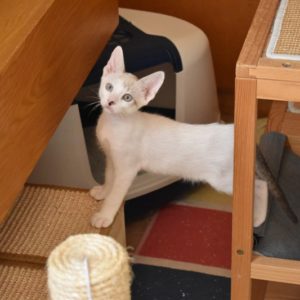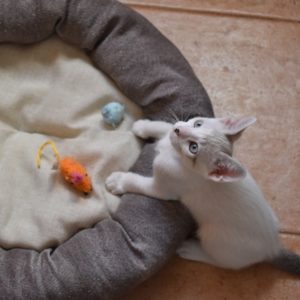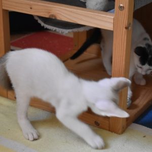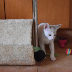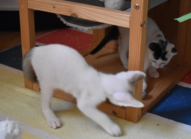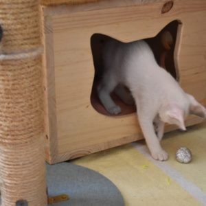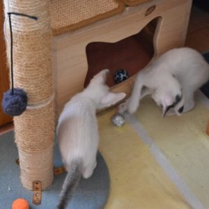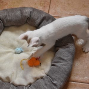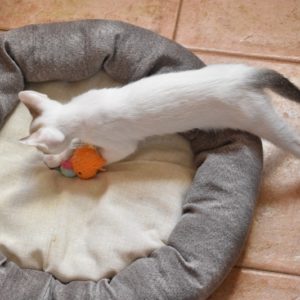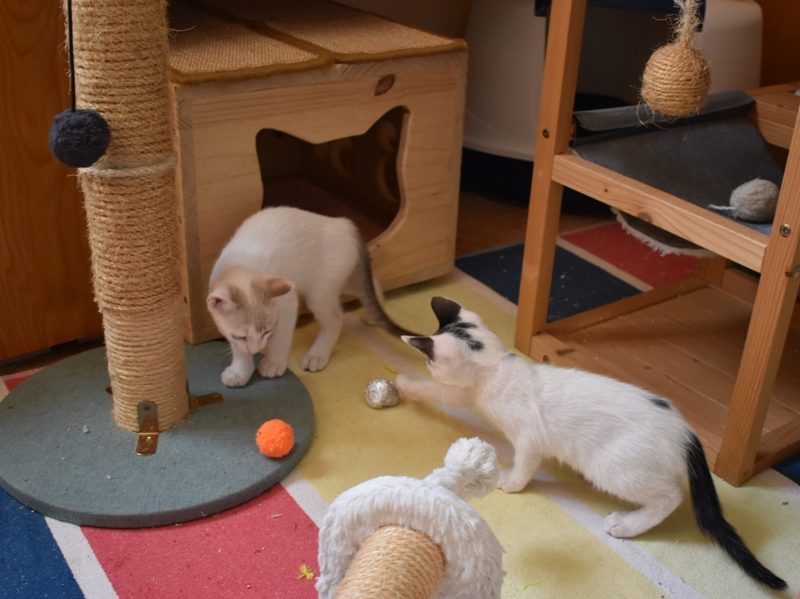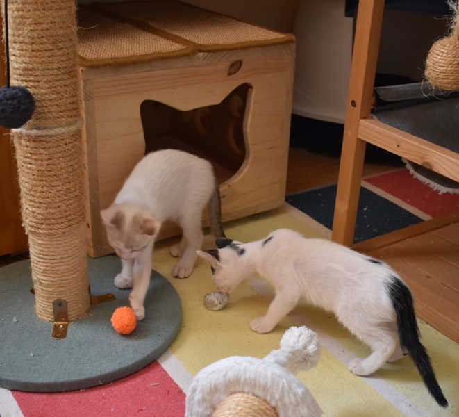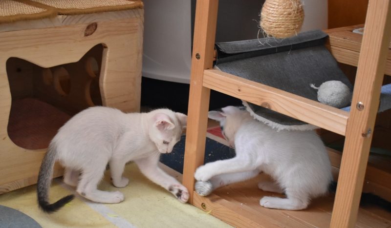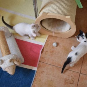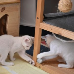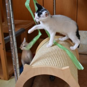 Una adopción conjunta les haría súper felices. Entregamos a los gatos cachorros siempre por parejas, nunca como gatos únicos antes de los 4 meses de edad. Pueden ser adoptados a partir de las 9 semanas, si se trata de adopción conjunta, o si van a un hogar en el que ya haya otro gato joven y juguetón con quien compartir el resto de su vida.