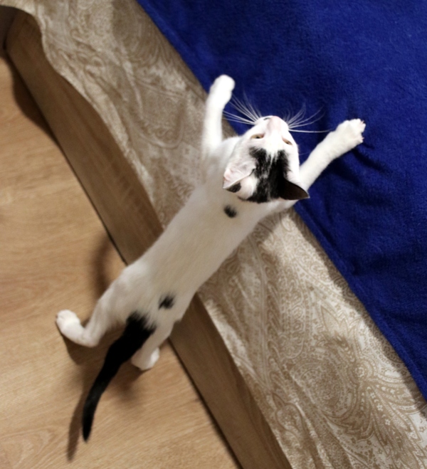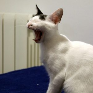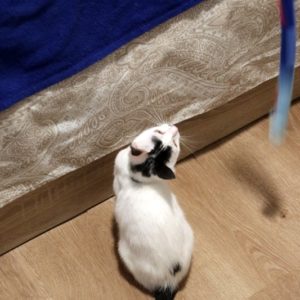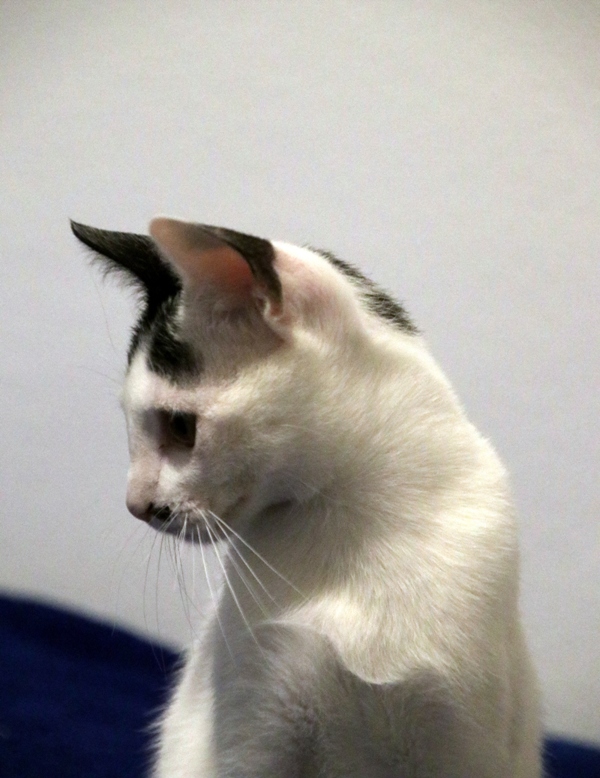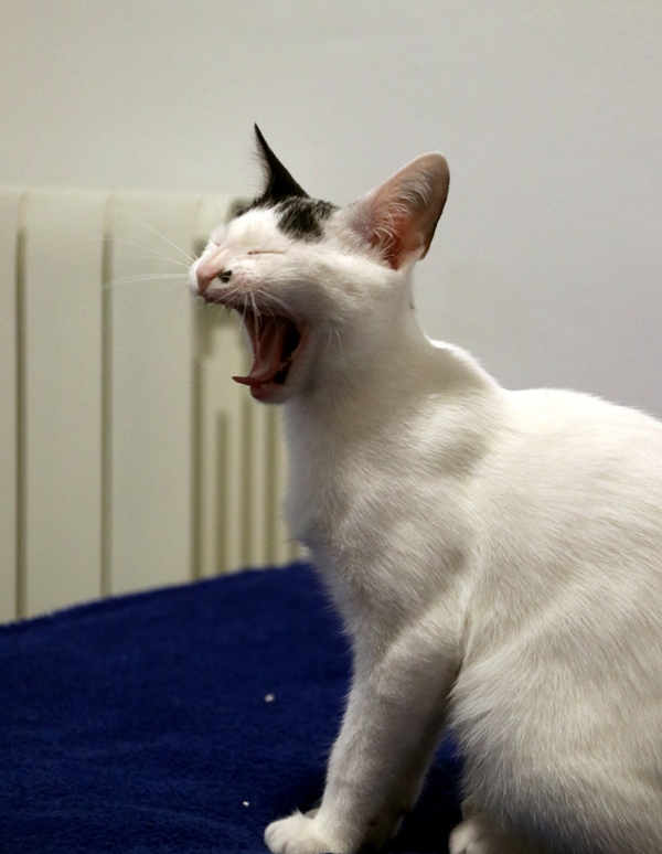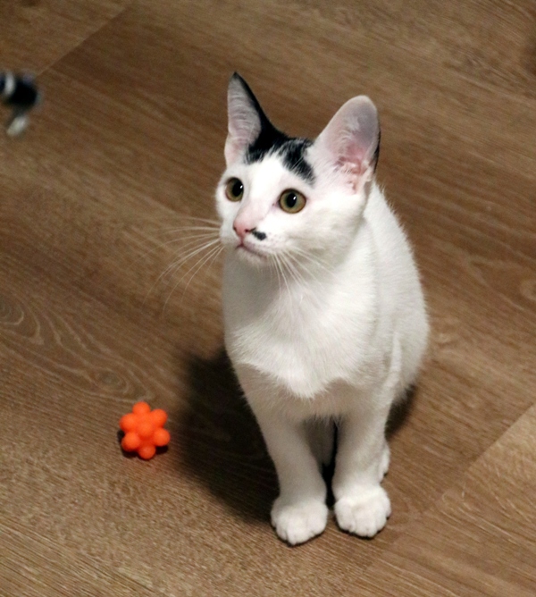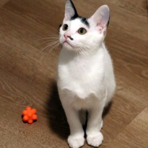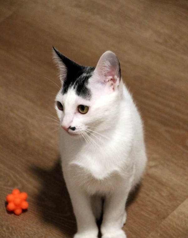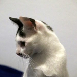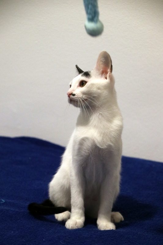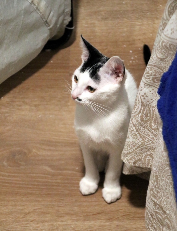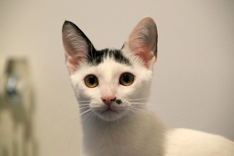 Esta chiquitina blanquinegra preciosa de ojitos tristes y preciosas motas en su pelaje, es al principio tímida, y luego es muy cotilla, divertida, y súper dulce. Convive en su casa de acogida con su hermano cruce de siamés MATISSE, y pasan el día correteando, haciendo el trasto, y cuando se cansan duermen uno sobre el otro pegaditos. Son un amor los dos.