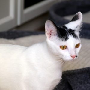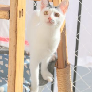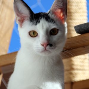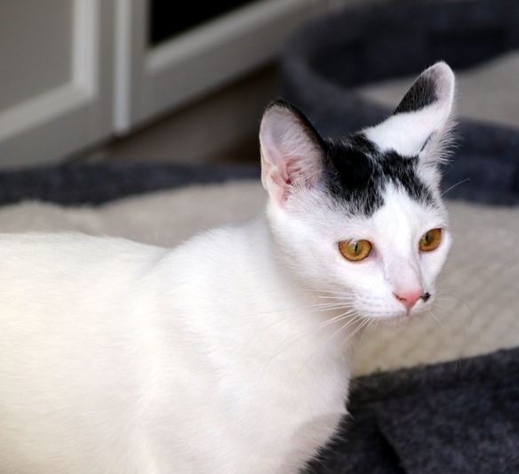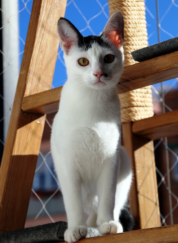 Esta monísima blanquinegra preciosa, de ojitos tristes y motas en su pelaje, es muy cotilla, divertida, sociable y súper dulce. Convive en su casa de acogida con su hermano cruce de siamés MATISSE, y pasan el día correteando, haciendo el trasto, y cuando se cansan duermen uno sobre el otro pegaditos. Son un amor los dos. Una adopción conjunta les haría súper felices.