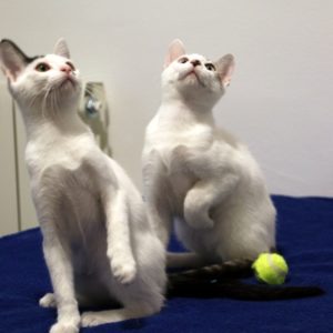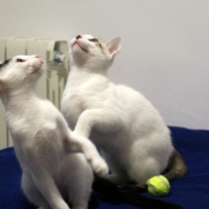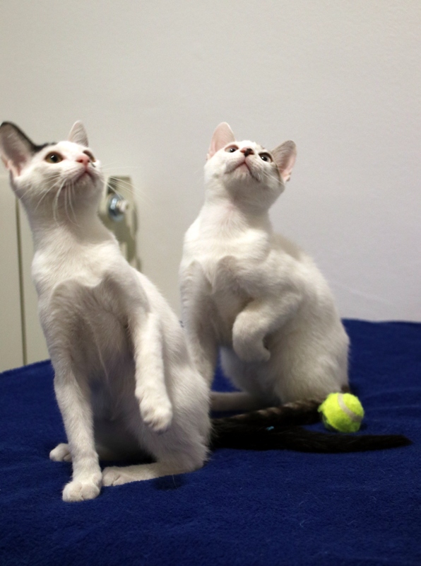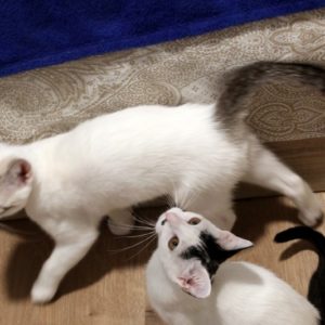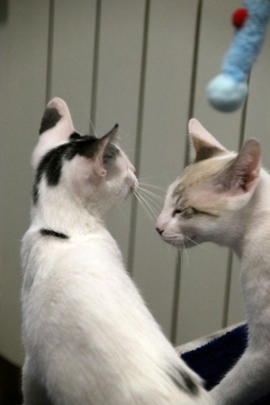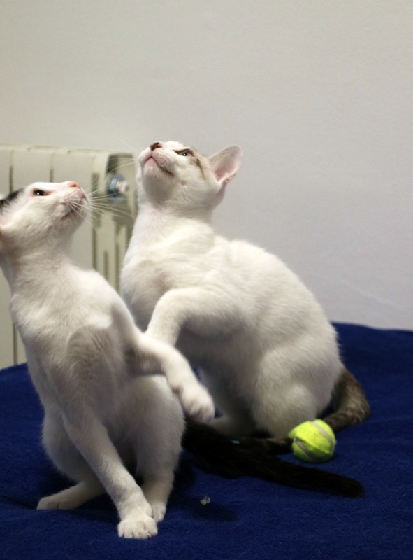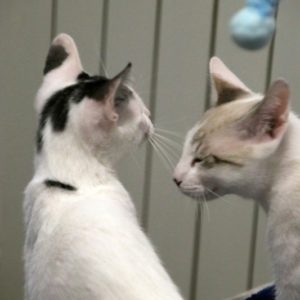 Una adopción conjunta les haría súper felices. Entregamos a los gatos cachorros siempre por parejas, nunca como gatos únicos antes de los 4 meses de edad. Pueden ser adoptados a partir de las 9 semanas, si se trata de adopción conjunta, o si van a un hogar en el que ya haya otro gato joven y juguetón con quien compartir el resto de su vida.