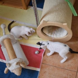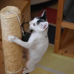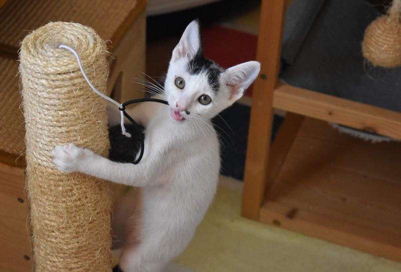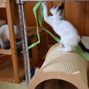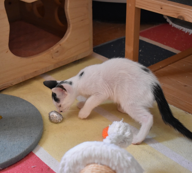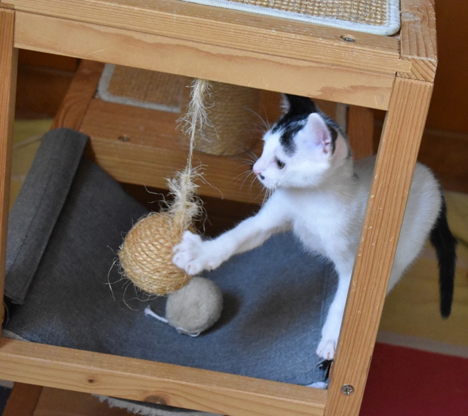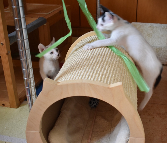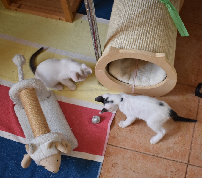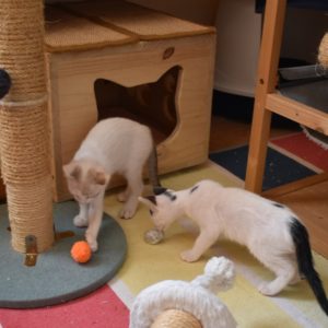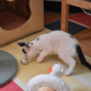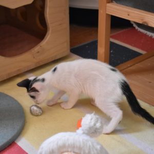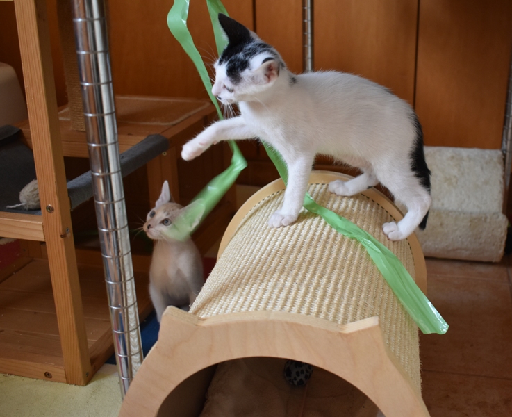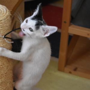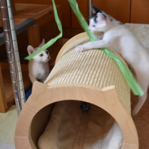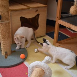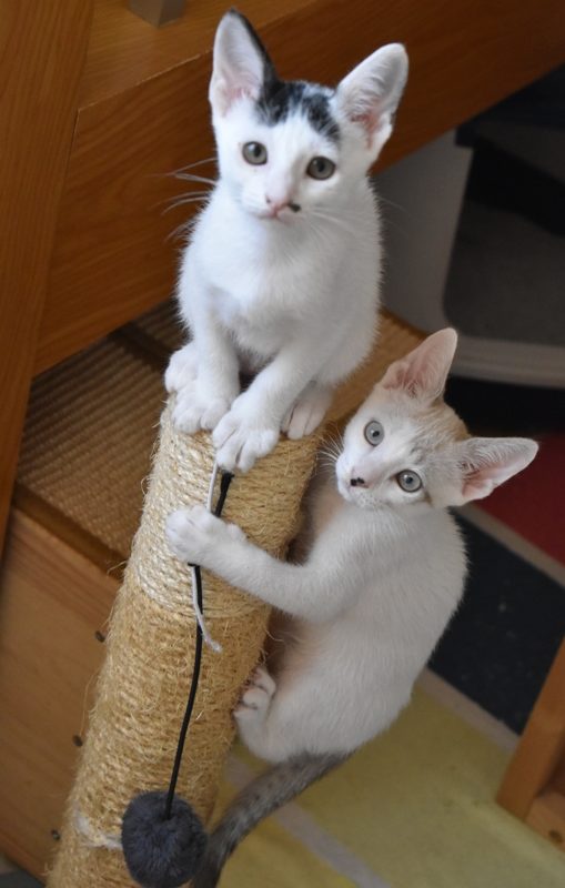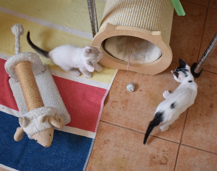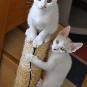 Una adopción conjunta les haría súper felices. Entregamos a los gatos cachorros siempre por parejas, nunca como gatos únicos antes de los 4 meses de edad. Pueden ser adoptados a partir de las 9 semanas, si se trata de adopción conjunta, o si van a un hogar en el que ya haya otro gato joven y juguetón con quien compartir el resto de su vida.