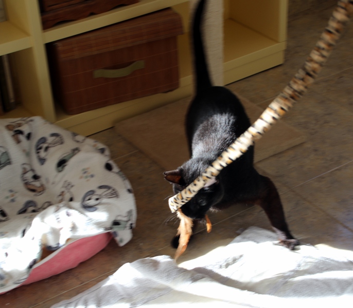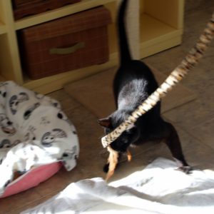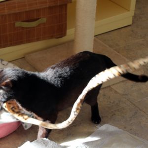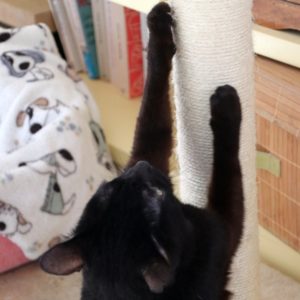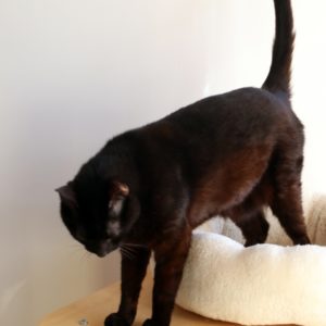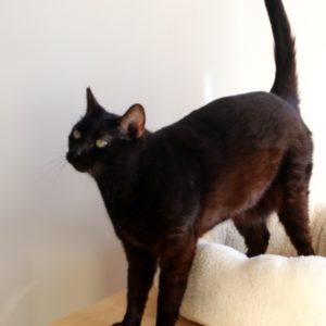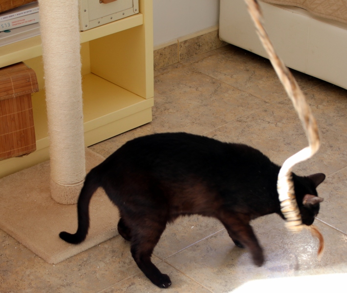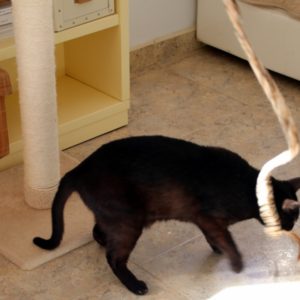Es apto como gato único, ya que le encanta la compañía humana, y ponerse boca arriba, y hacer croquetas pidiendo mimos. Es un gato al que le gusta jugar, porque es un adulto joven, pero lo hace de manera tranquila, sin ser nada trasto.