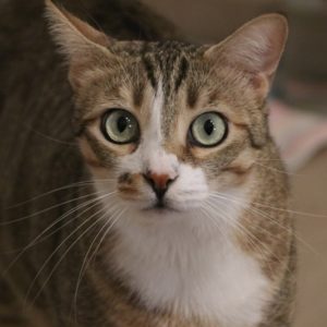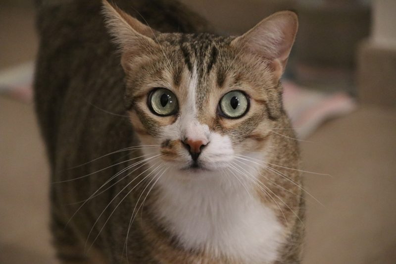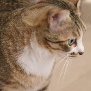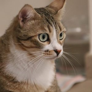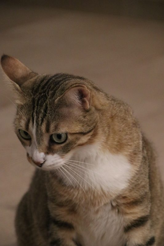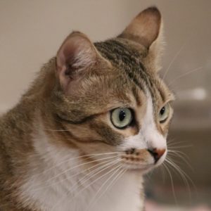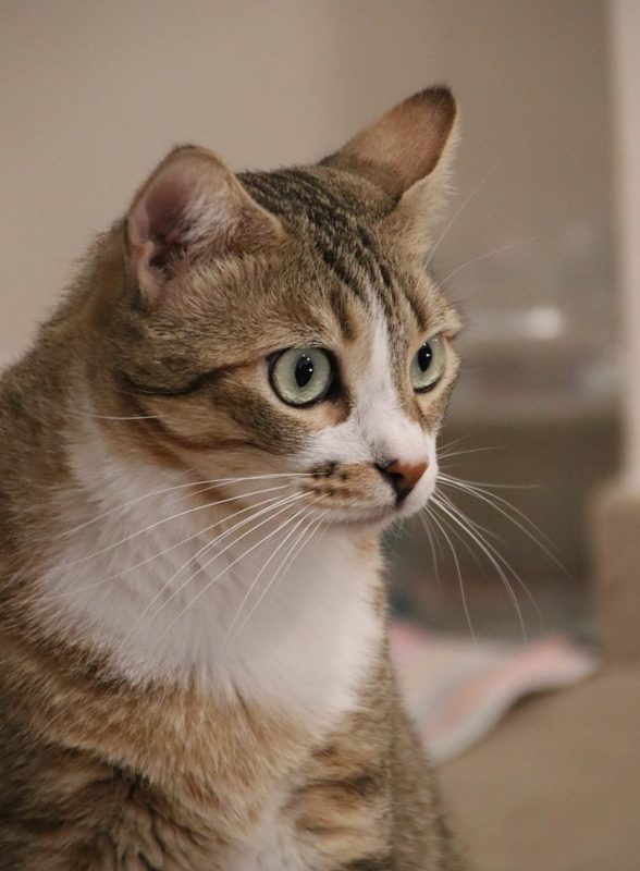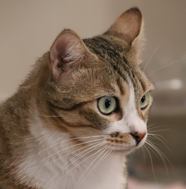 Aquí está este guapetón redondito de ojazos verdes y color blanquipardo marrón claro, a quien hemos llamado MONROE, que es el mejor compañero que ha tenido sin duda ninguna nuestro gato sordo blanco acogido MONK. MONROE es tímido con los humanos, dependiente de la compañía de otro gato, no dependiente de las personas.
