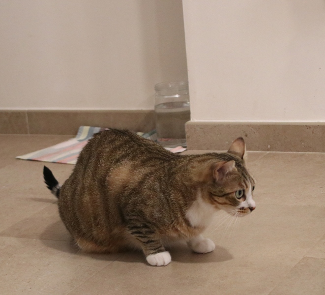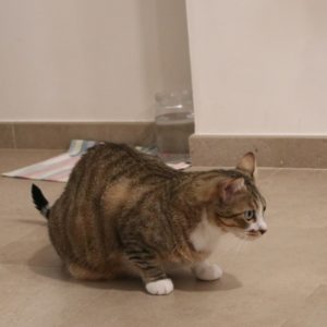 Necesita un hogar muy tranquilo, con personas adultas, y la compañía de Monk o Keturi, con quienes juega y vive equilibrado y seguro. No es apto como gato único.