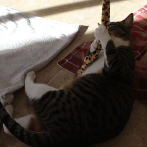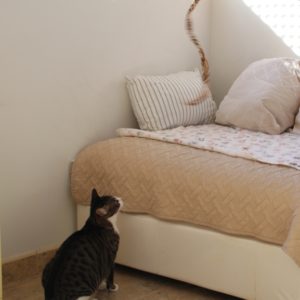 Buscamos para ella un hogar donde ya viva otra gata o gato bueno, sociable y juguetón como ella, para que quemen toda la energía que tienen, o una adopción conjunta con alguno de nuestros gatos o gatas jovencitas rescatadas, con quien sea compatible y tenga muy buena relación.