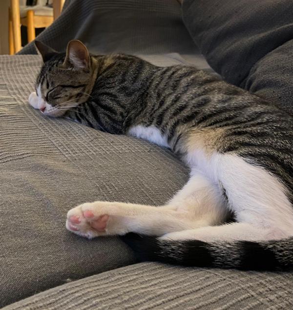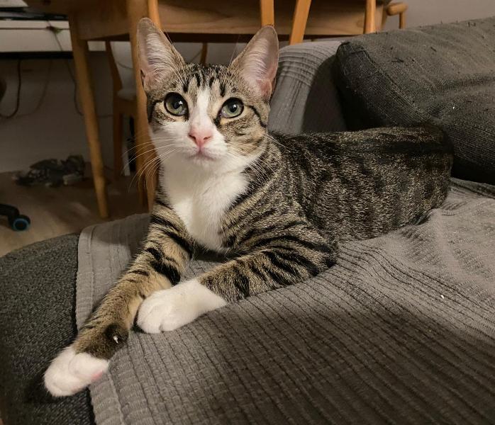 Nacida sobre el 12 de abril de 2025, ya está desparasitada, vacunada, la hemos esterilizado, y es negativa a leucemia e inmunodeficiencia felinas.